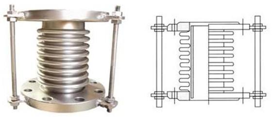 軸向內壓式波紋補償器習慣上也叫減震式波紋補償器,波紋管,膨脹節(jié),或伸縮節(jié)。由構成其工作主體的波紋管(一種彈性元件)和端 管、支架、法蘭、導管等附件組成。