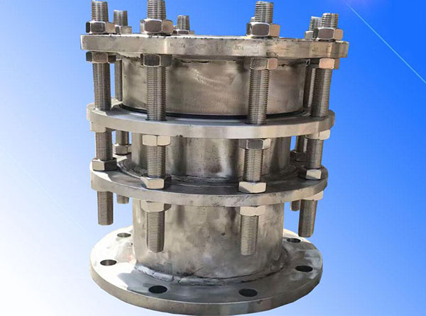 可拆式雙法蘭傳力接頭是有松套伸縮接頭和短管法蘭、傳力螺桿等構(gòu)件組成,它能傳遞被連接件的壓力推力(盲板力)和補(bǔ)償管路誤差,并且具有一定的調(diào)節(jié)量,方便實(shí)際的施工環(huán)境進(jìn)行調(diào)整。
